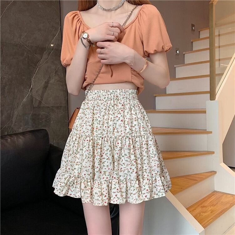 Sanmuziファストファッション婦人服〜2021年新しい伸縮性ウエストは花柄蓮の葉スカートAラインスカート女性で薄くなっています エラスティック TB2-6 TB2-64809236880