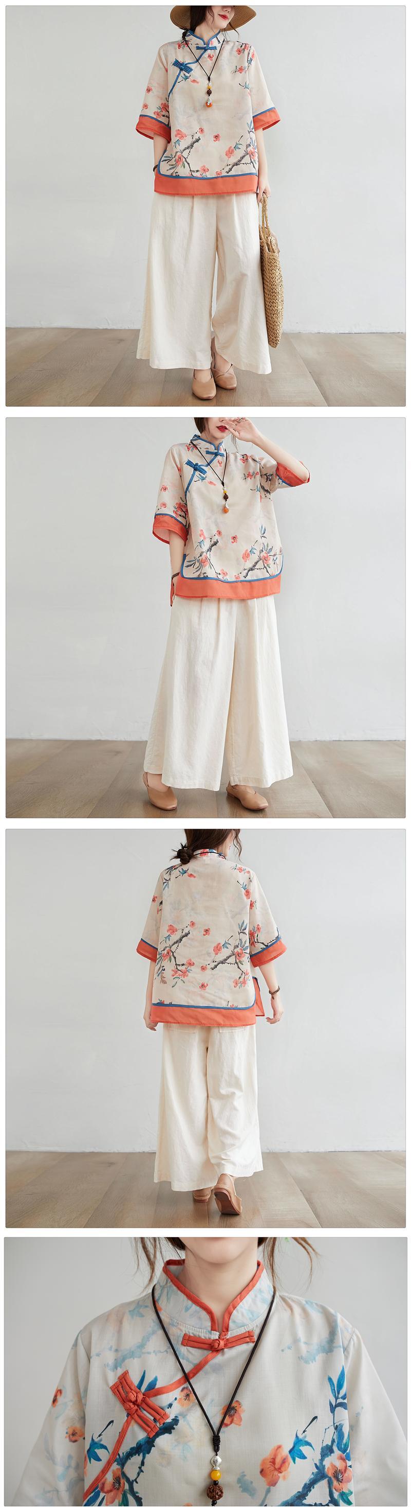 ラージサイズのファットシスター、ウエスタンスタイル、7点スリーブプリントシャツ、夏の女性レトロディスクボタンスタンドカラーカジュアルシャツタイド 大きめサイズ サマー 夏物 TB2-12 TB2-1294974417644