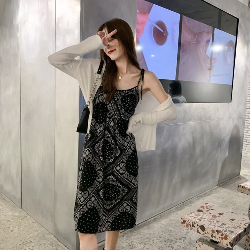 レトロなスリングドレス女性2021年夏新バージョンルーズで薄いミドル丈スカート気質女神ファンスカート サマー 夏物 TB2-6 TB2-670623458854