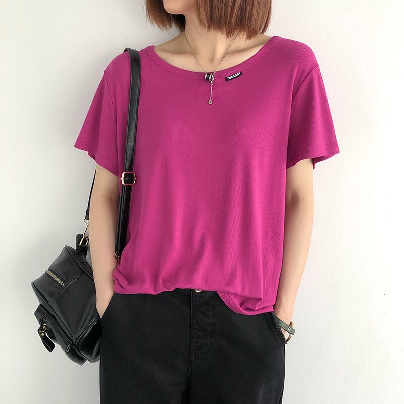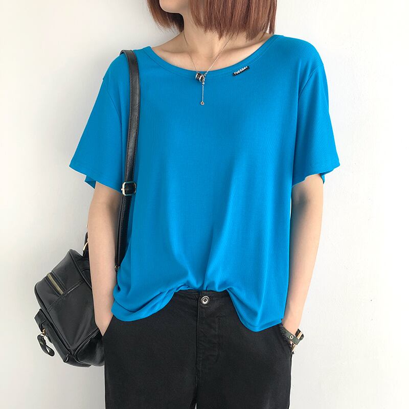 2021年夏のニュースタイルオールマッチピュアコットン半袖Tシャツレディースルーズラウンドネックスレッドカジュアルトップボトミングシャツタイド サマー 夏物 Oネック TB2-9 TB2-951003421345