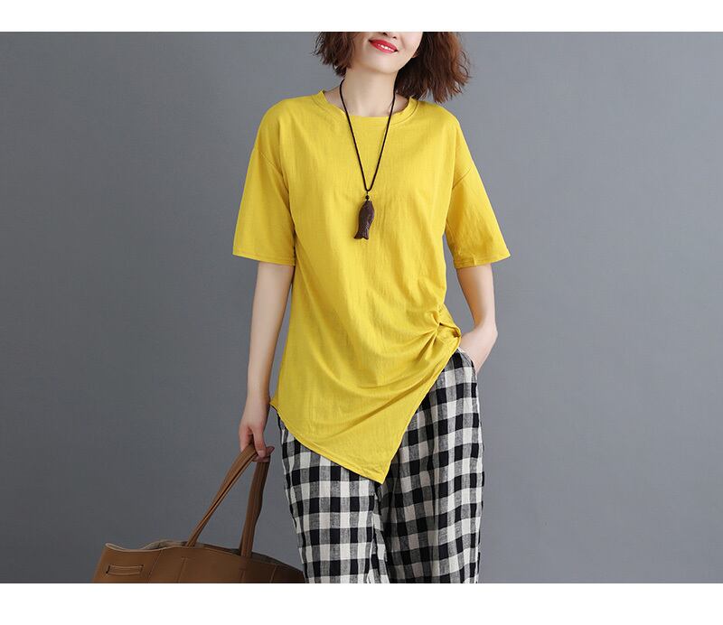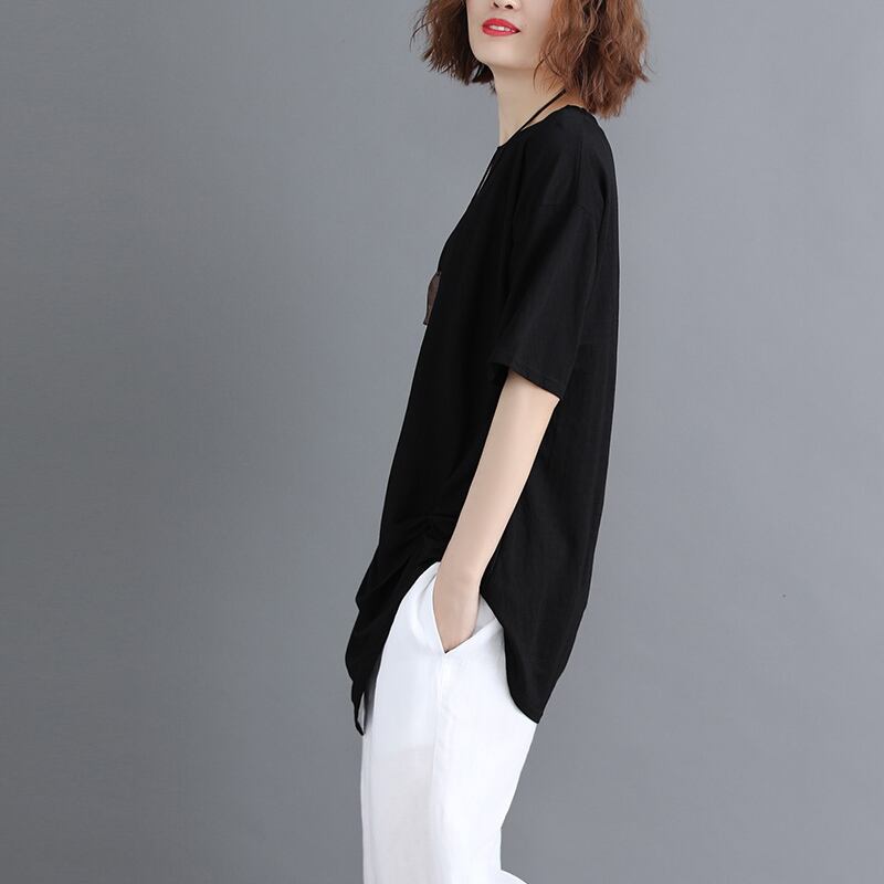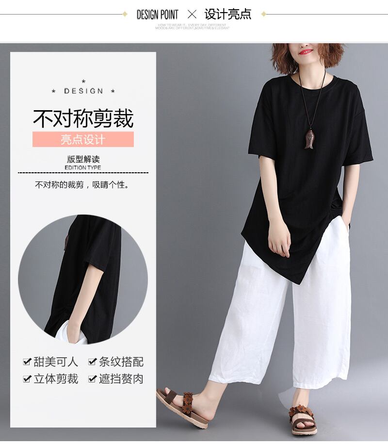 夏の新しいワイルドルーズラージサイズレディースアートボトミングシャツラウンドネック半袖薄い不規則な綿とリネントップ ショート コットン ハーフスリーブ 大きめサイズ サマー 夏物 Oネック TB2-12 TB2-1266516643752