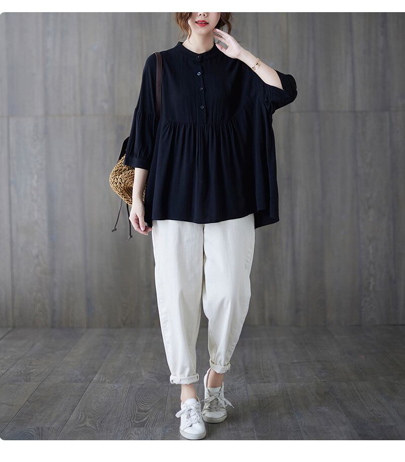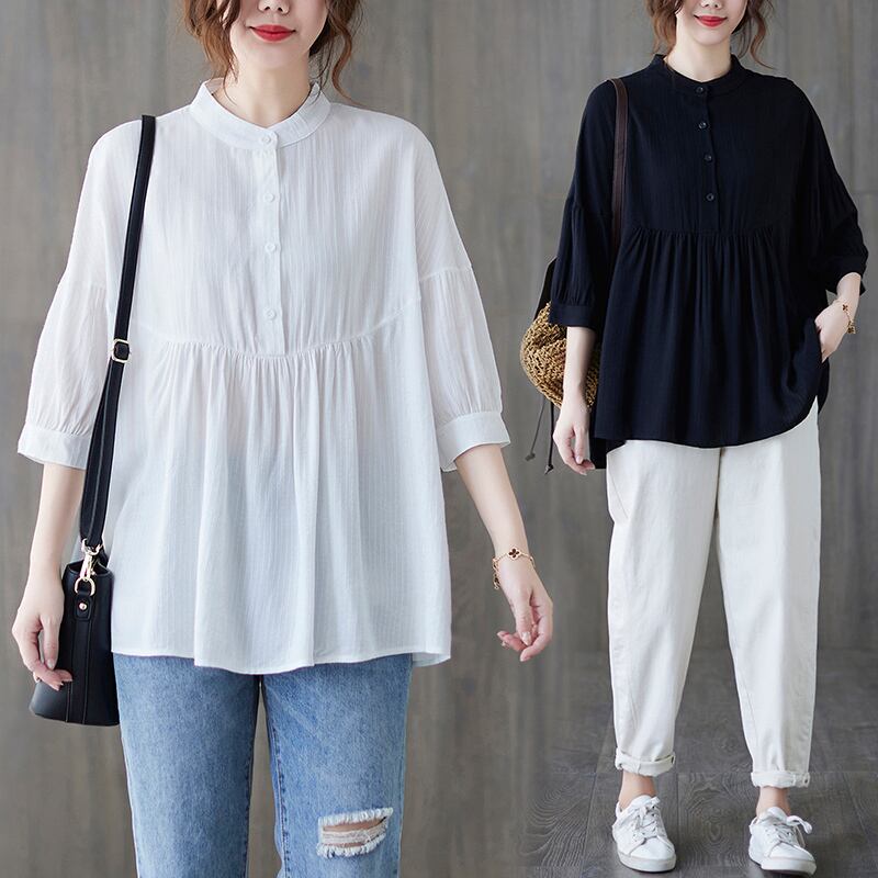 2021年夏の新しいファットMMルーズで用途の広い、薄いカバー腹文学レトロプラスサイズスタンドカラーシャツTシャツ女性 大きめサイズ サマー 夏物 TB2-12 TB2-1211994787899