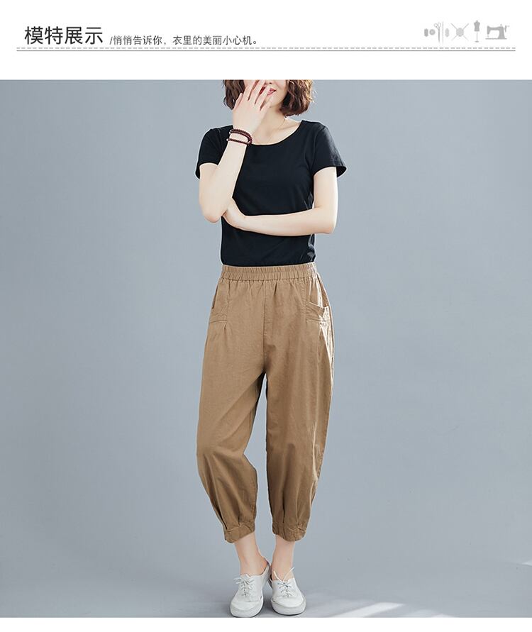2021年夏のアートプラスサイズファットmm薄手のコットンとリネンのハーレムパンツ女性は無地の伸縮性ウエスト9ポイントカジュアルパンツを緩めます エラスティック 大きめサイズ サマー 夏物 ソリッドカラー TB2-12 TB2-1277442855695