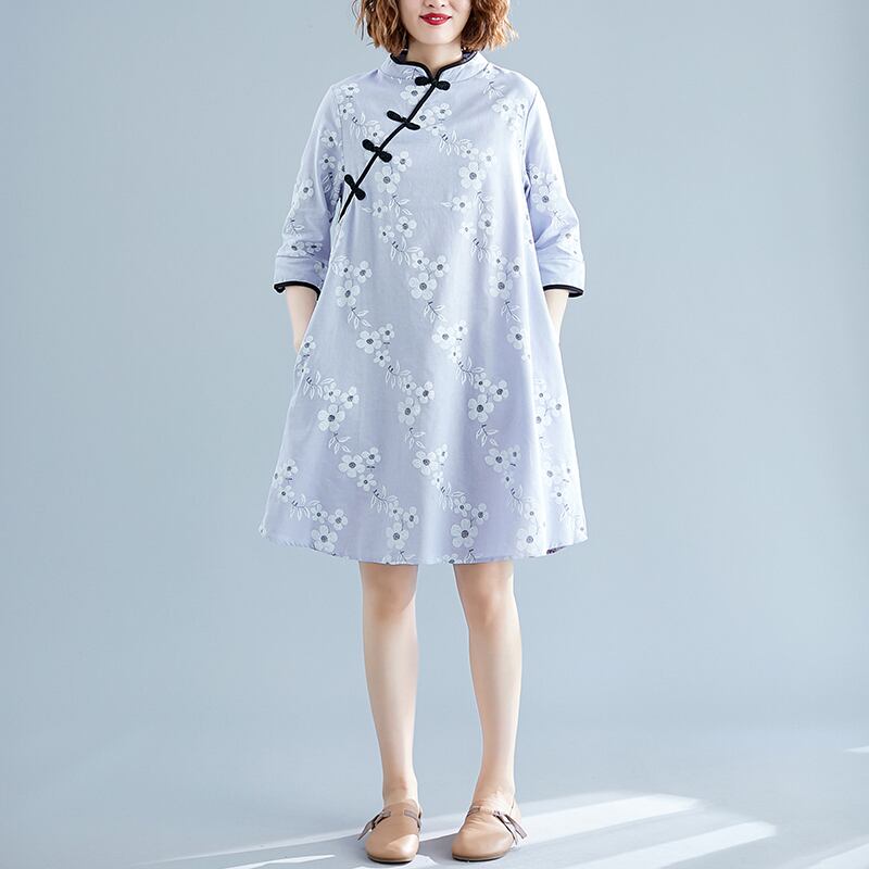 プラスサイズの女性の脂肪mm初秋の文学とアートレトロ斜め前立てバックルスタンド襟改良チャイナドレス細いAラインスカート 大きめサイズ オータム 秋物 TB2-8 TB2-863272133522