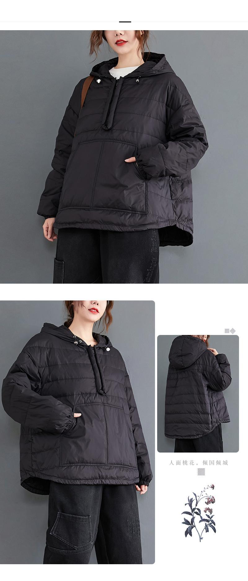 プラスサイズの女性の冬のルーズフード付きセータースタイルのダウンパッド入りジャケットカジュアルオールマッチ軽くて暖かいコットンジャケットの潮 大きめサイズ ウィンター 冬物 TB2-8 TB2-881598595536