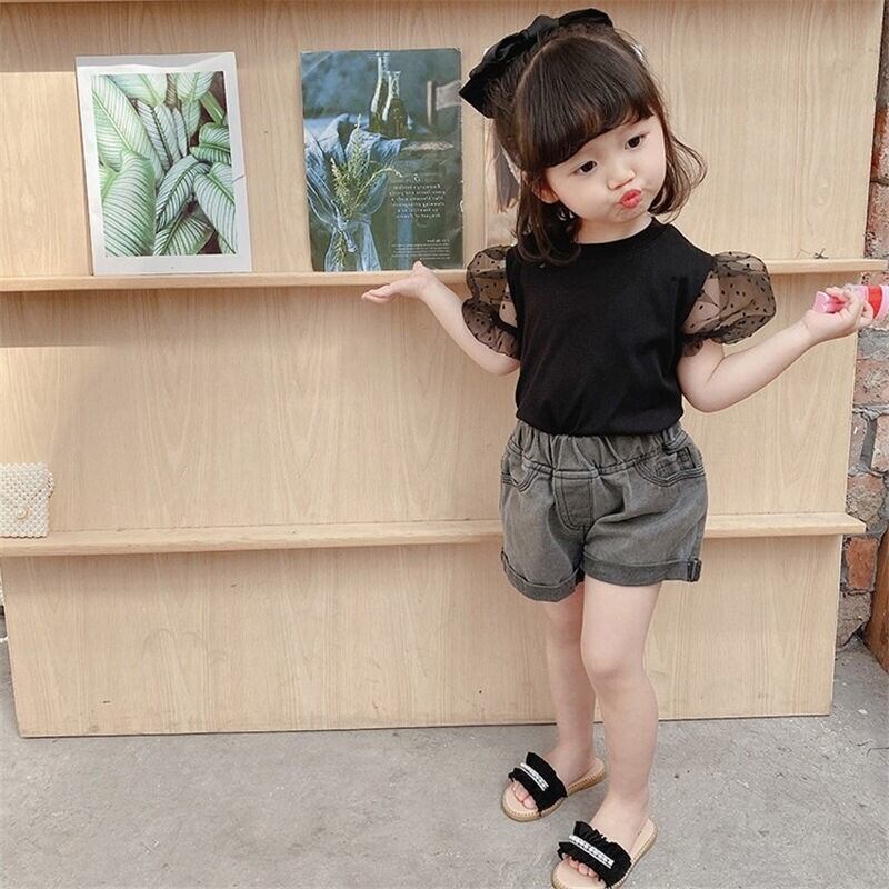 子供用シアサッカー半袖ボトミングシャツ2021夏新作 'ウェーブドットTシャツ子供用トランペットスリーブトップコットン サマー 夏物 TB2-5 TB2-545889272990