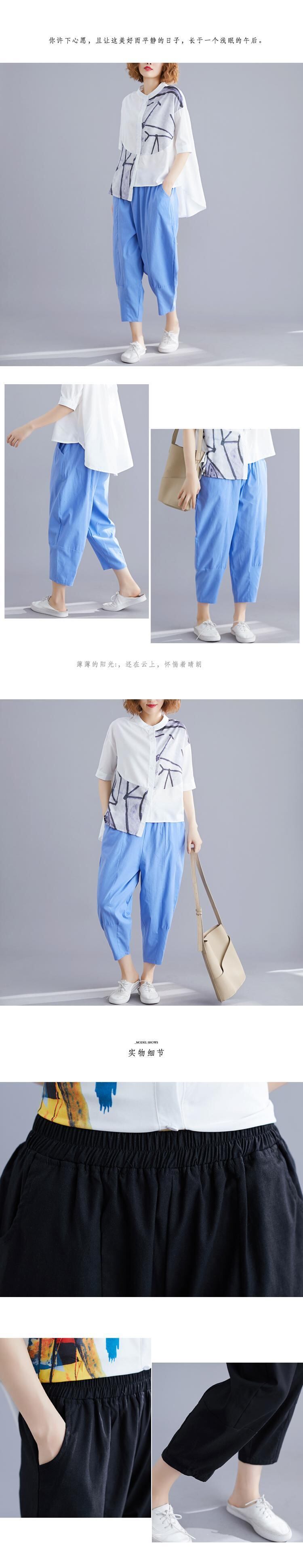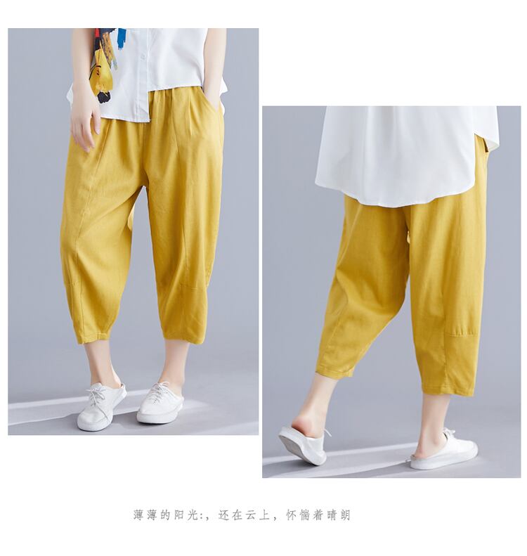 2021年夏新作文芸大サイズ無地コットン・リネンハーレムパンツレディースクロップドパンツ伸縮性ウエストルーズカジュアルパンツ エラスティック 大きめサイズ サマー 夏物 ソリッドカラー TB2-12 TB2-1213526900470
