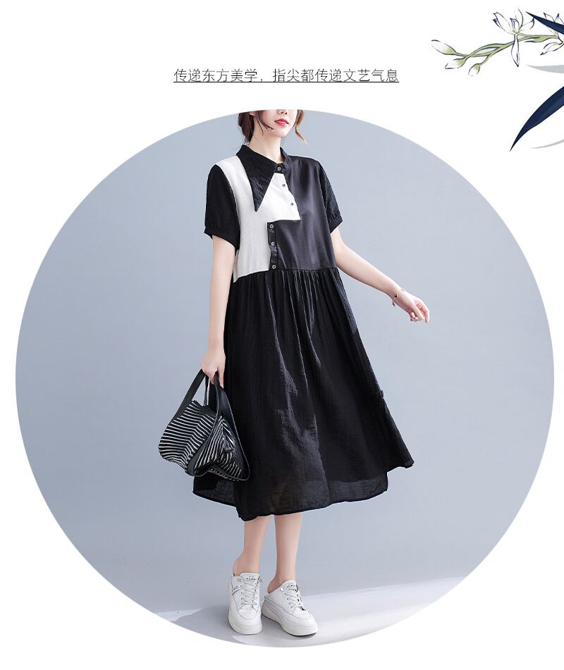 ラージサイズの女性の夏のルーズニッチなデザインセンスカラーマッチングドレス女性のハイウエストの細いAラインシャツスカート 大きめサイズ サマー 夏物 TB2-8 TB2-836870580244