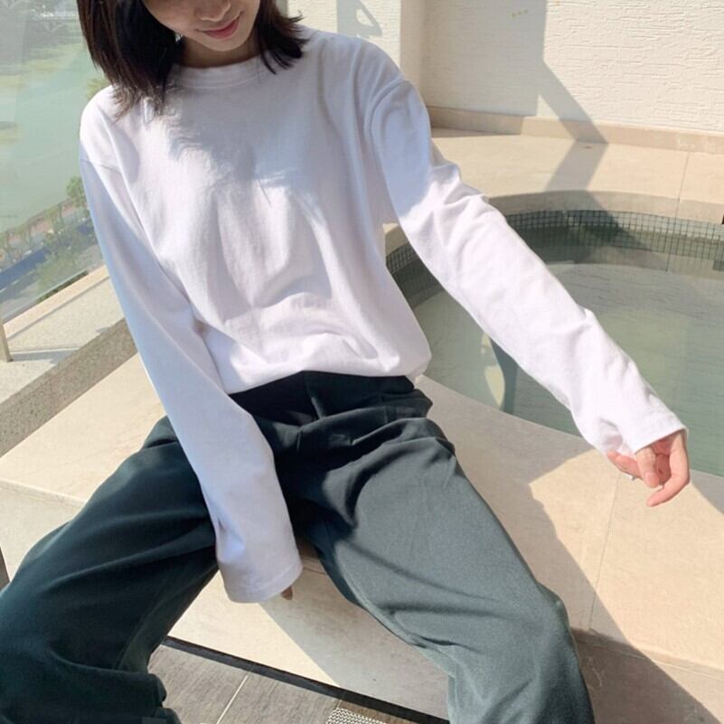 新しいカジュアルベーシック無地シンプルラウンドネックホワイトコットン長袖ボトミングTシャツの秋冬婦人服バージョン ロング オータム 秋物 ウィンター 冬物 Oネック ソリッドカラー TB2-6 TB2-691104961704