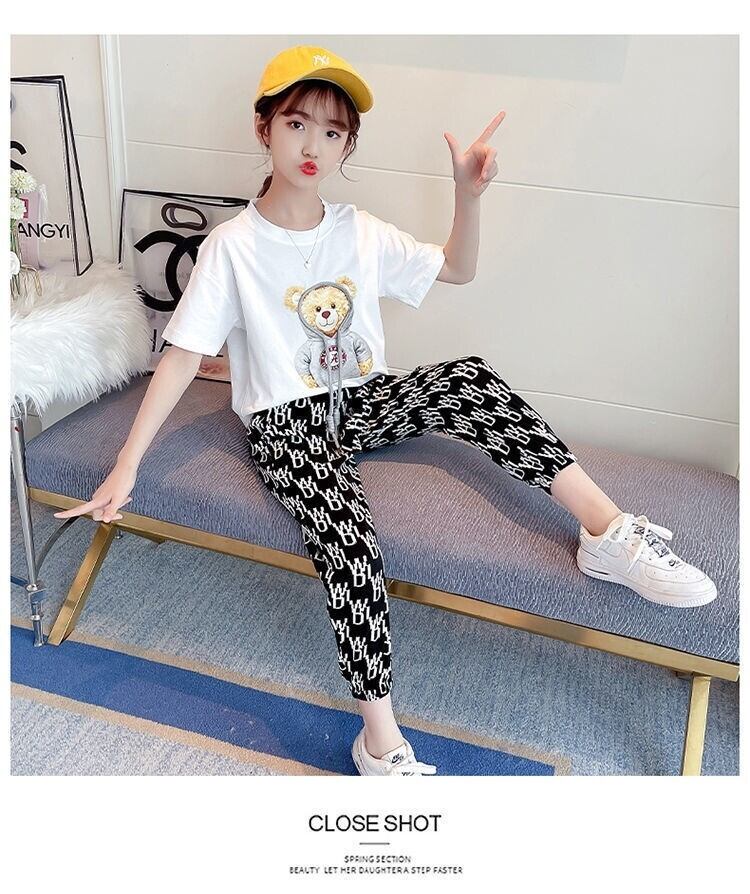 ガールズサマースーツ2021ニューリトルエインスタイルネットレッド半袖Tシャツミディアム&ラージキッズファッショナブルツーピースセット9 夏物 TB2-5 TB2-554594748939