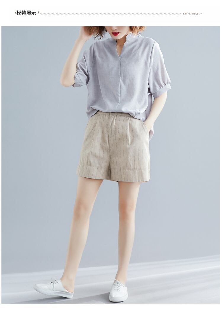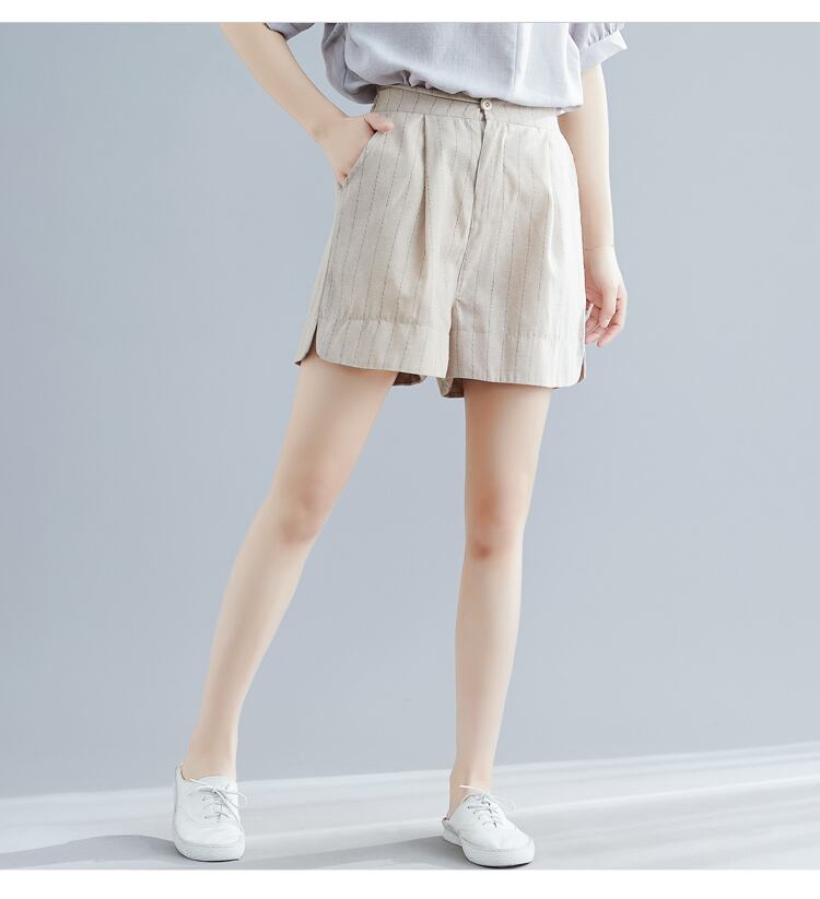 2021年夏の新しいパンツオールマッチ年齢を減らす綿とリネンの大きなサイズのルーズで薄いカジュアルなストライプのショーツ女性 コットン 大きめサイズ サマー 夏物 ブルマー TB2-12 TB2-1273390574730