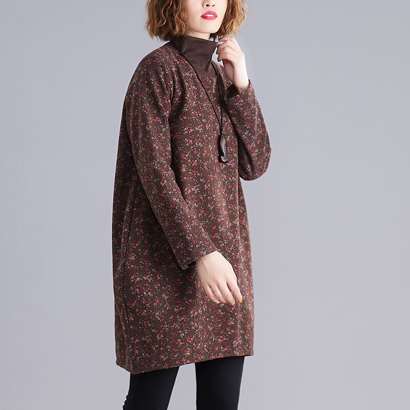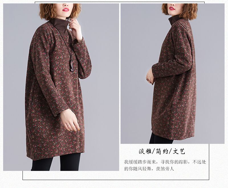 レトロなエスニックスタイルのコットンとリネンのプリントに加えて、ベルベットのハイネック長袖ドレスの女性の2019年秋冬の新しいベーススカート ロング オータム 秋物 ウィンター 冬物 TB2-8 TB2-847122546839