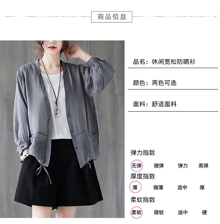 2020年夏の新作ルーズラージサイズエアコンシャツ無地Vネック薄日焼け防止服レディース長袖カーディガンジャケットトレンド ロング 大きめサイズ サマー 夏物 ソリッドカラー TB2-8 TB2-846268171704