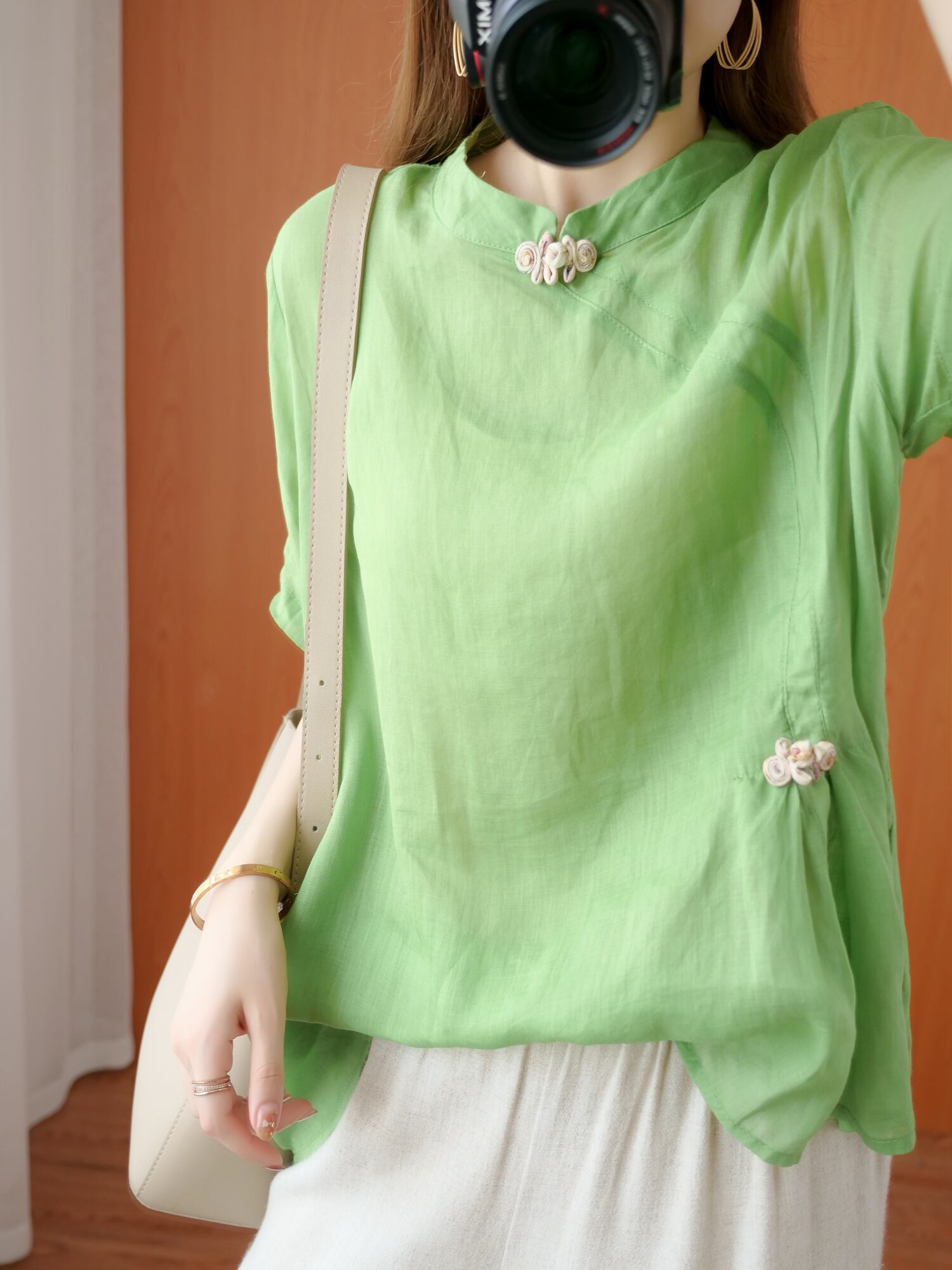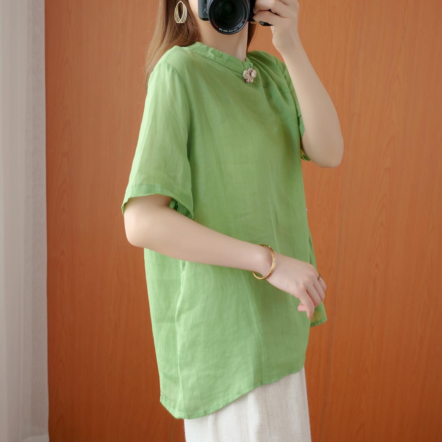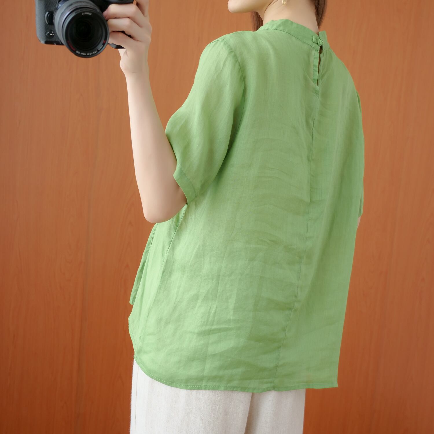 ラージサイズファットmmウエスタンスタイルカバーベリーシャツ2020年夏新しいルーズリテラシーナショナルスタイルディスクボタンスタンドカラープルオーバーシャツ女性 大きめサイズ サマー 夏物 TB2-8 TB2-848698256879