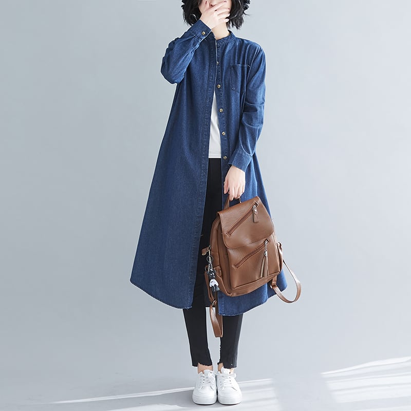 ロングオーバーザニーデニムシャツスカートレディース2020春新作ルーズラージサイズカジュアルシングルブレストスタンドカラーワンピース 大きめサイズ スプリング 春物 TB2-8 TB2-868267094089
