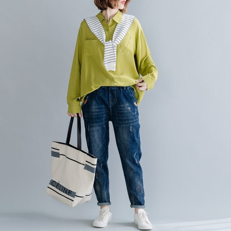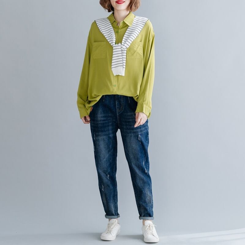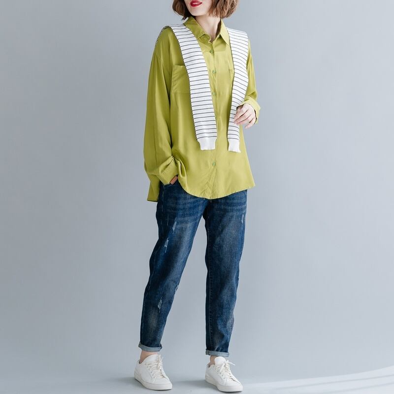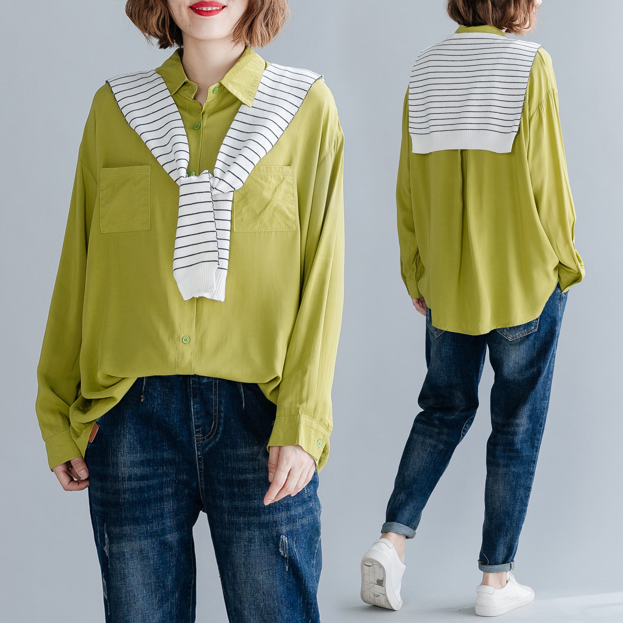プラスサイズの女性の2019年秋の新しいルーズシャツフェイクツーピーススプライシングストライプショール長袖シャツトレンド ロング 大きめサイズ オータム 秋物 TB2-8 TB2-858153054360