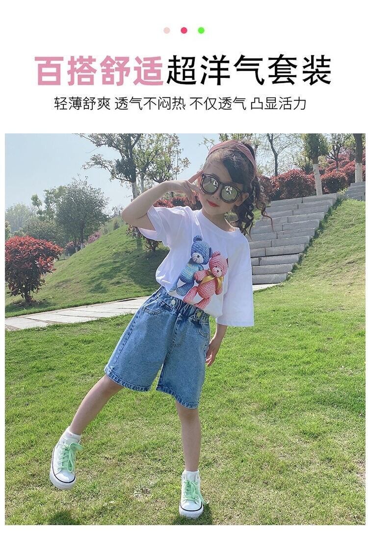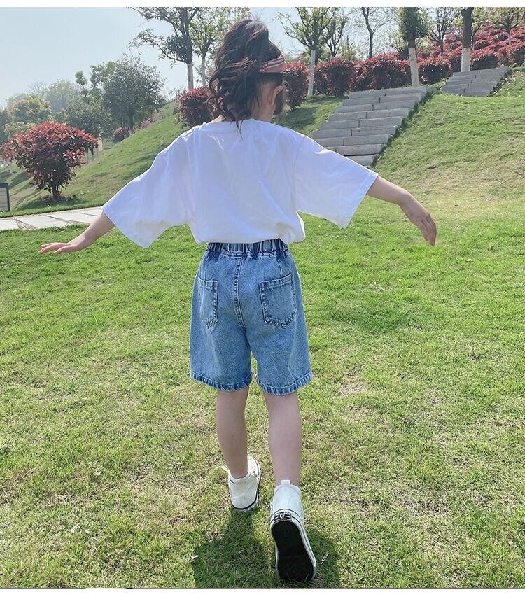 ガールズサマースーツ2021ミドル・ユニバーシティキッズウエスタンスタイルハイウエストワイドレッグデニム5点パンツ漫画Tシャツツーピースセット ハイウェスト 夏物 ワイドパンツ TB2-5 TB2-524499347909