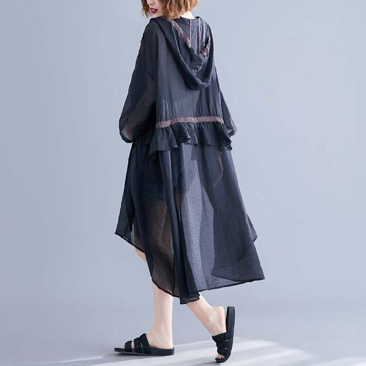 ファットシスターサマーニュールーズラージサイズフリルステッチフード付き日焼け防止服膝上ロングウインドブレーカージャケット女性 大きめサイズ 夏物 TB2-8 TB2-813578512683
