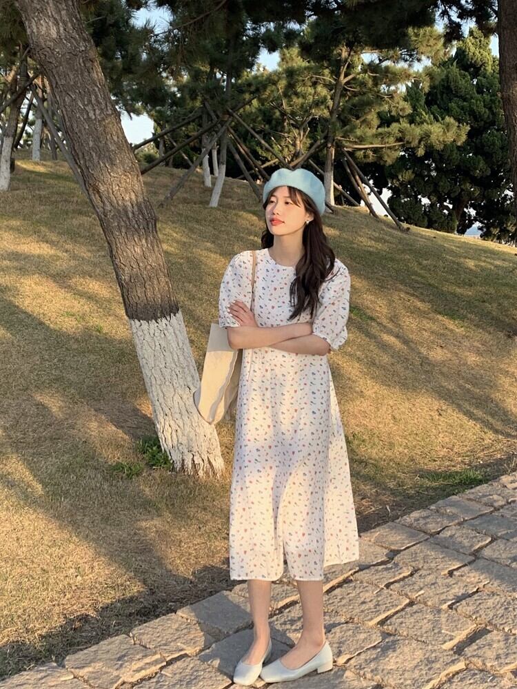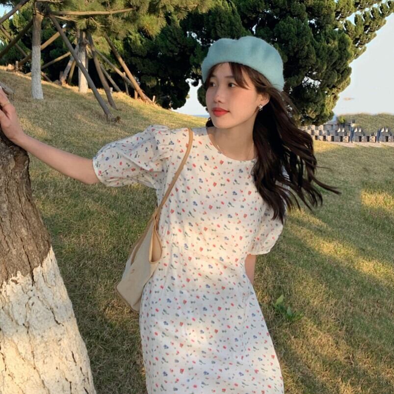 2021年夏新作ウエストウエストスリミング気質Aラインミドル丈フローラル半袖ワンピースレディース ショート ハーフスリーブ サマー 夏物 花柄 TB2-6 TB2-639879879939