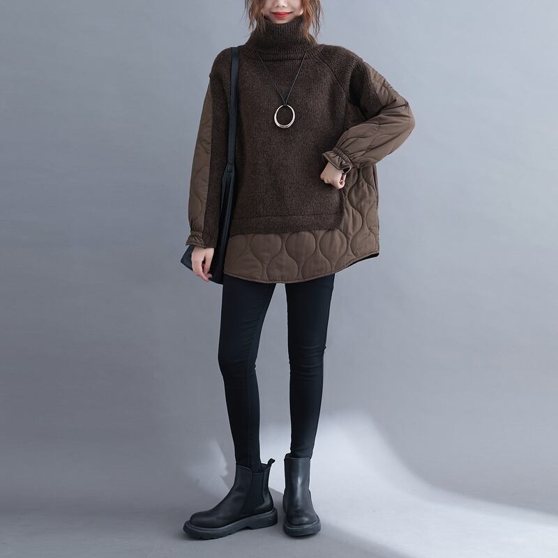プラスサイズの女性の太った姉妹秋と冬のファッションハイネックキルティングステッチ偽のツーピースセーター女性のアウターウェア厚いニットセーター 大きめサイズ オータム 秋物 ウィンター 冬物 TB2-8 TB2-874689966663