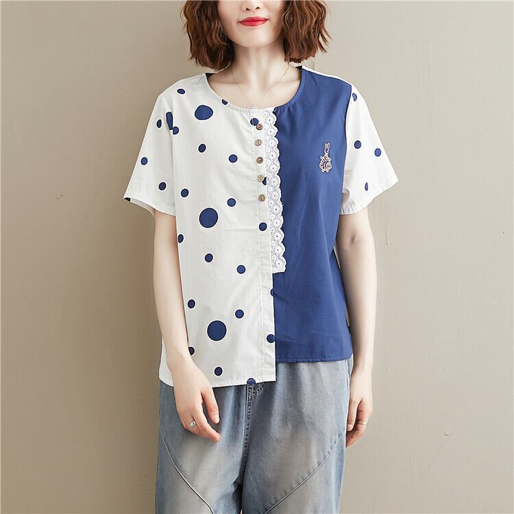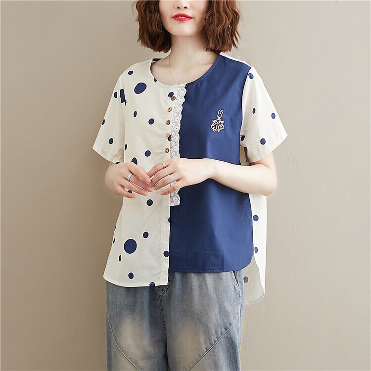 プラスサイズの女性の夏の脂肪MMレースステッチ綿とリネン半袖Tシャツ女性ルーズヘム不規則なトップ コットン 大きめサイズ サマー 夏物 TB2-8 TB2-885244184662