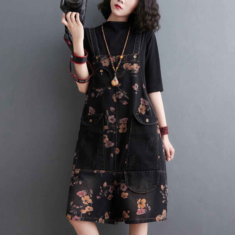 デニムプリントオーバーオール女性バージョン2021夏ルーズビッグポケットシンジャンプスーツワイドレッグ5点パンツ サマー 夏物 TB2-8 TB2-861974216244