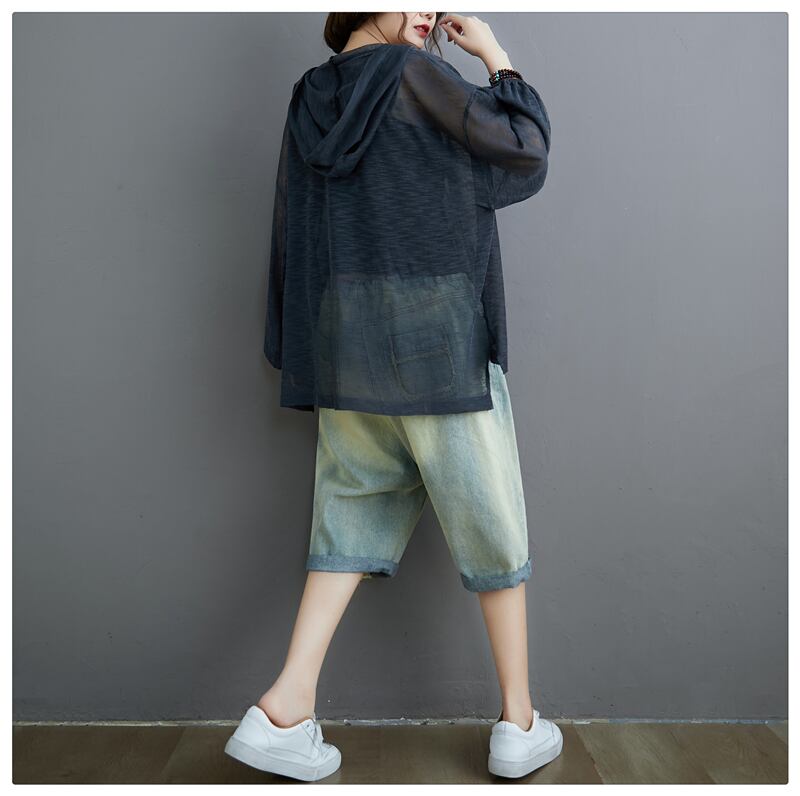 大きいサイズの日焼け止め服女性2020夏のアイスシルク屋外通気性日焼け止め服カジュアル薄いルーズフード付きジャケット潮 大きめサイズ サマー 夏物 TB2-8 TB2-842888696173