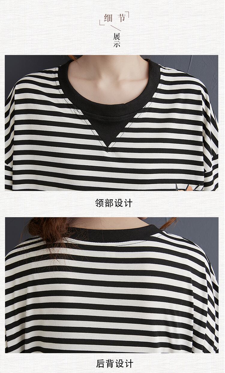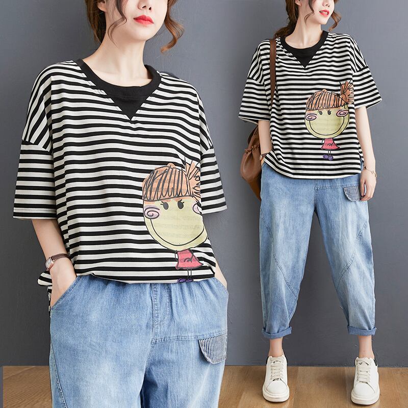 プラスサイズの女性の夏の新しいストライプの半袖Tシャツ、女性のルーズボトミングシャツは薄く、オールマッチの年齢を減らす漫画のトップ 大きめサイズ サマー 夏物 TB2-8 TB2-849378617706