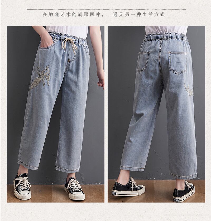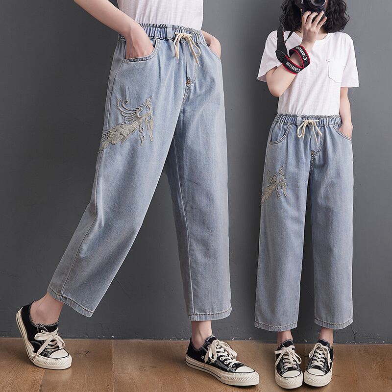 Xiaofeijia〜夏バージョンの大型の薄い刺繍レースアップジーンズの学生は、すべてのマッチする薄いワイドレッグクロップドパンツです。 レッド 大きめサイズ サマー 夏物 TB2-8 TB2-828291638541