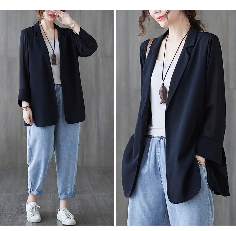 シフォンスモールスーツ女性2021年夏新ミドル丈ルーズラージサイズ薄いドレープ日焼け防止服薄手のコート 大きめサイズ サマー 夏物 TB2-8 TB2-8303508846