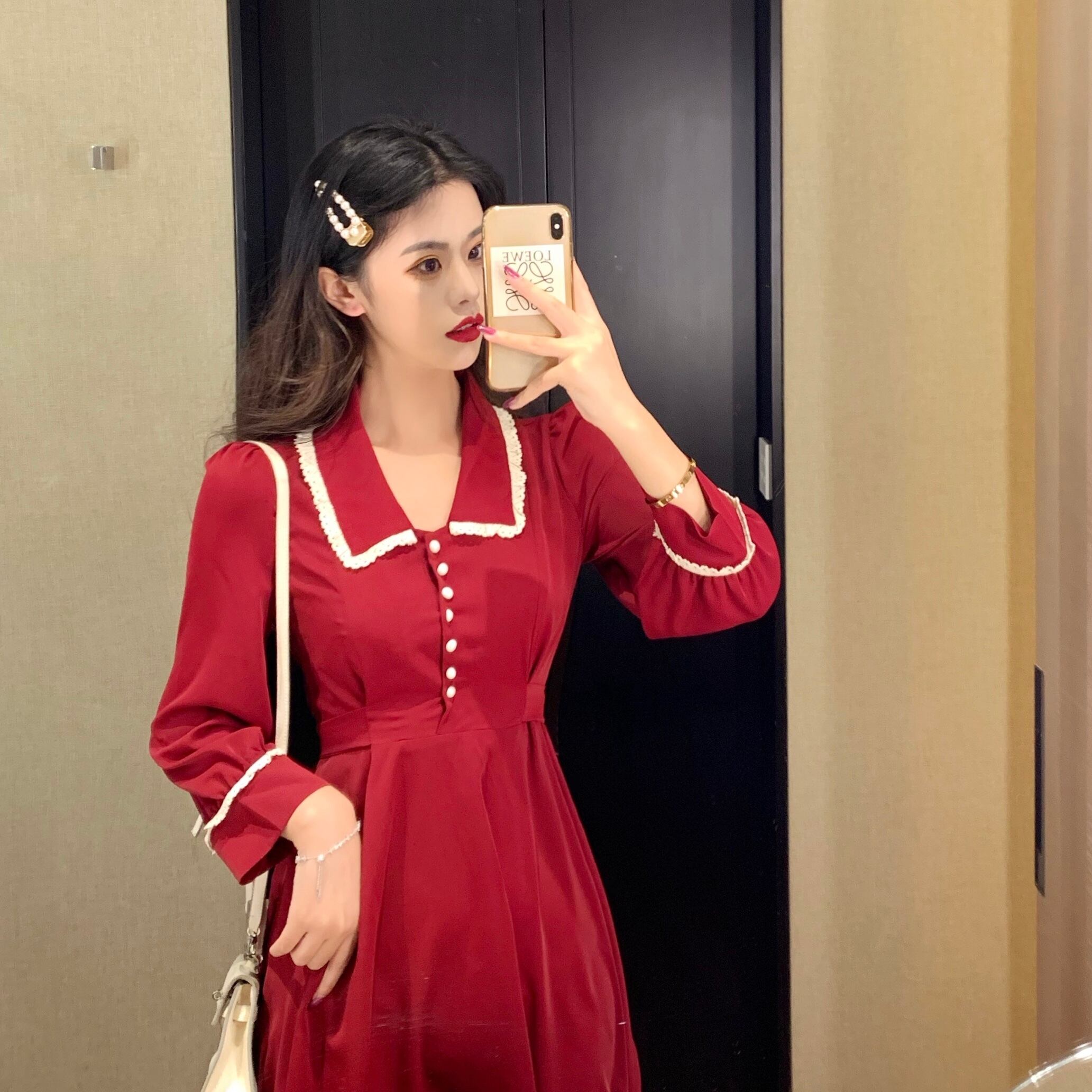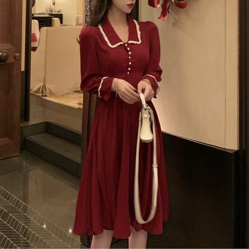 女神ファンChaoxian気質レトロロングスカート女性太った姉妹ウエストウエストカバーヒップ膝丈シフォンドレスプラスサイズ レッド 大きめサイズ TB2-10 TB2-1022423077018