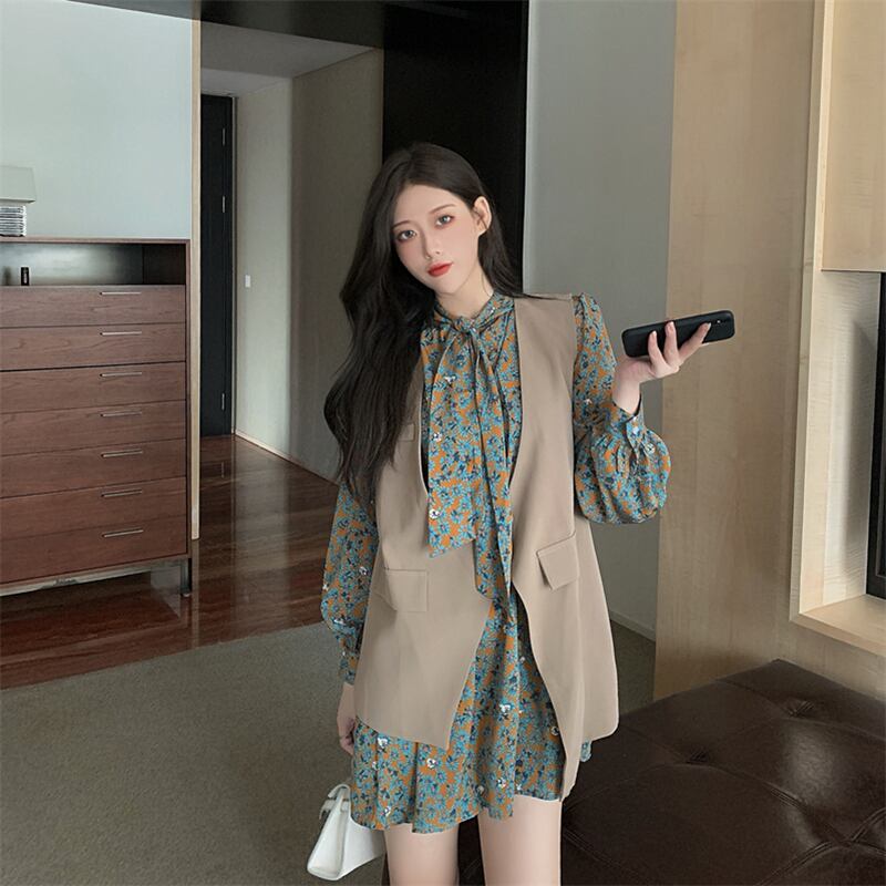 プラスサイズの女性のルーズな年齢を減らすファッションスーツのスカートの女性のeignスタイルのベストジャケット花柄のドレスツーピースファットmm 大きめサイズ TB2-10 TB2-1060619927243