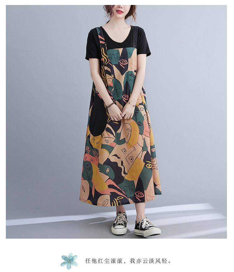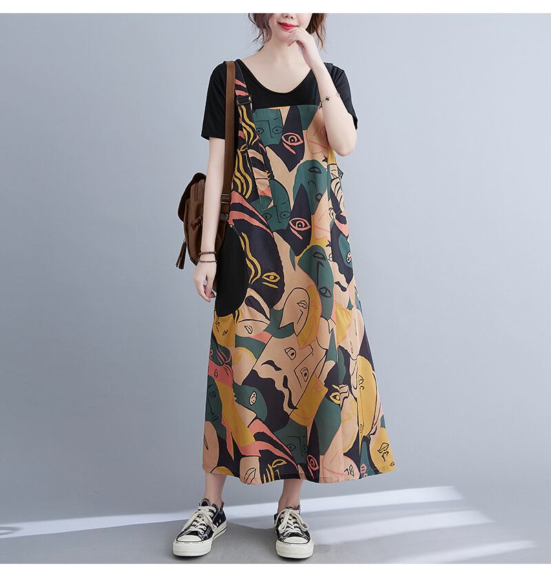 Xiaofeijia〜プラスサイズのサスペンダースカート女性2021新しいレトロなプリントウエスタンスタイルの長い膝上Aラインドレス ロング 大きめサイズ TB2-8 TB2-886199627374
