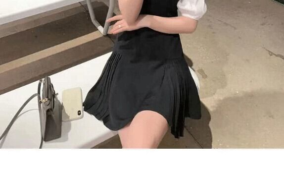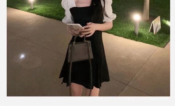 ヘップバーン気質ドレス女性フレンチレトロウエストは細めの小黒ドレス大サイズバブルスリーブプリーツスカート太いmm ブラック 大きめサイズ TB2-10 TB2-1044072139941