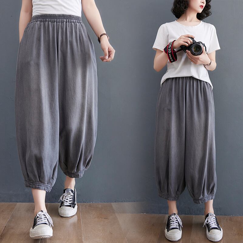 テンセルデニムハーレムパンツ女性2021年夏新しい太った妹は薄くてドレープオールマッチの伸縮性ウエストブリーチ エラスティック サマー 夏物 TB2-8 TB2-886782045765