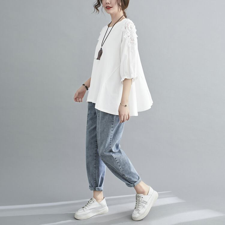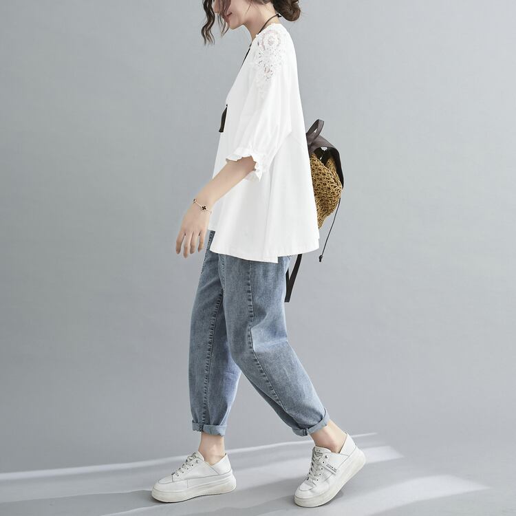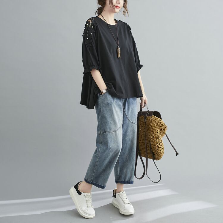 大きなサイズの女性の夏のルーズバージョンの腹で覆われたベビーシャツトップファットmmレースステッチビーズTシャツ女性 レッド 大きめサイズ サマー 夏物 TB2-8 TB2-836883211845