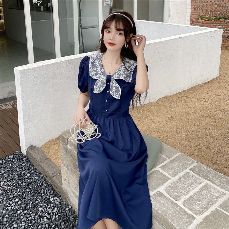 プラスサイズの女性のフレンチロングソフトシフォンスカートデザインの軽い成熟したスタイルのパフスリーブドレス太った姉妹の感覚 大きめサイズ TB2-10 TB2-1046550276484