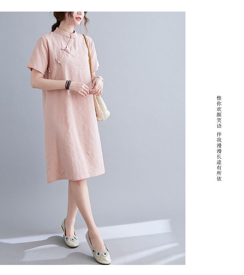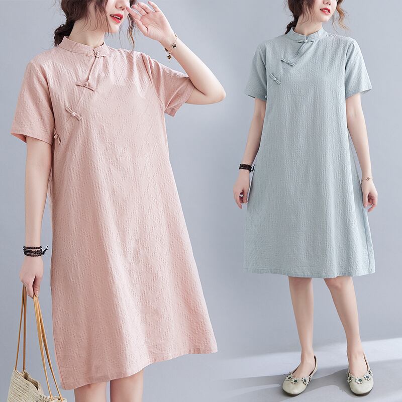 レトロな中国風の改良されたチャイナドレスの女性2021年の新しい夏の文学的なナショナルスタイルの斜めのボタンジャカードドレス サマー 夏物 TB2-8 TB2-824030269347