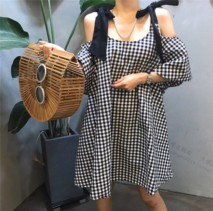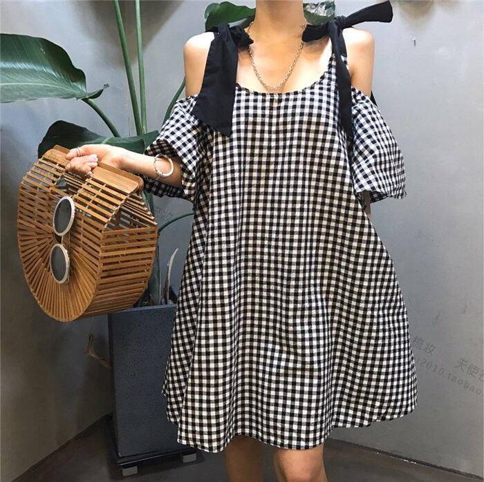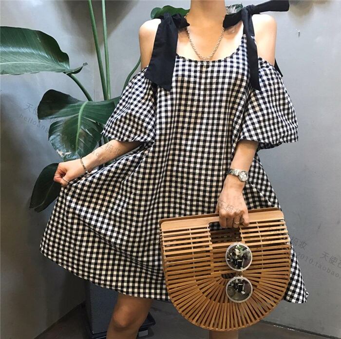 プラスサイズの女性のルーズベリーカバードレス、女性の薄い、ウエスタンスタイルのストラップレスレトロチェック柄スカート、夏の太った姉妹 大きめサイズ サマー 夏物 TB2-10 TB2-1032514489891