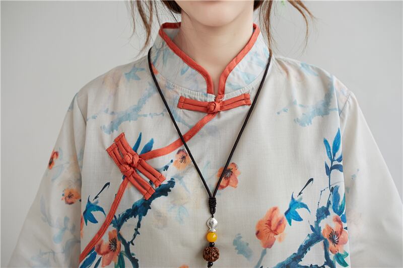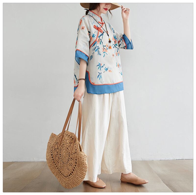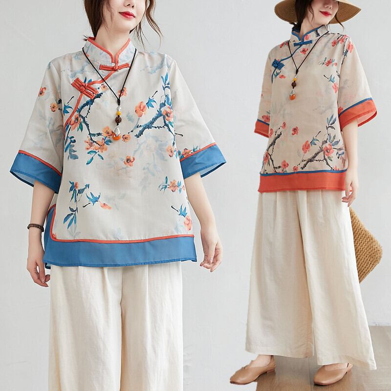 ラージサイズのファットシスター、ウエスタンスタイル、7点スリーブプリントシャツ、女性の夏のレトロディスクボタンスタンドカラーシャツタイド 大きめサイズ サマー 夏物 TB2-8 TB2-87070912887