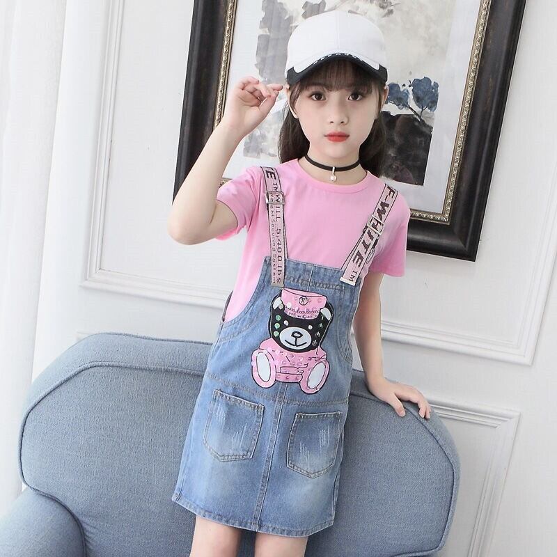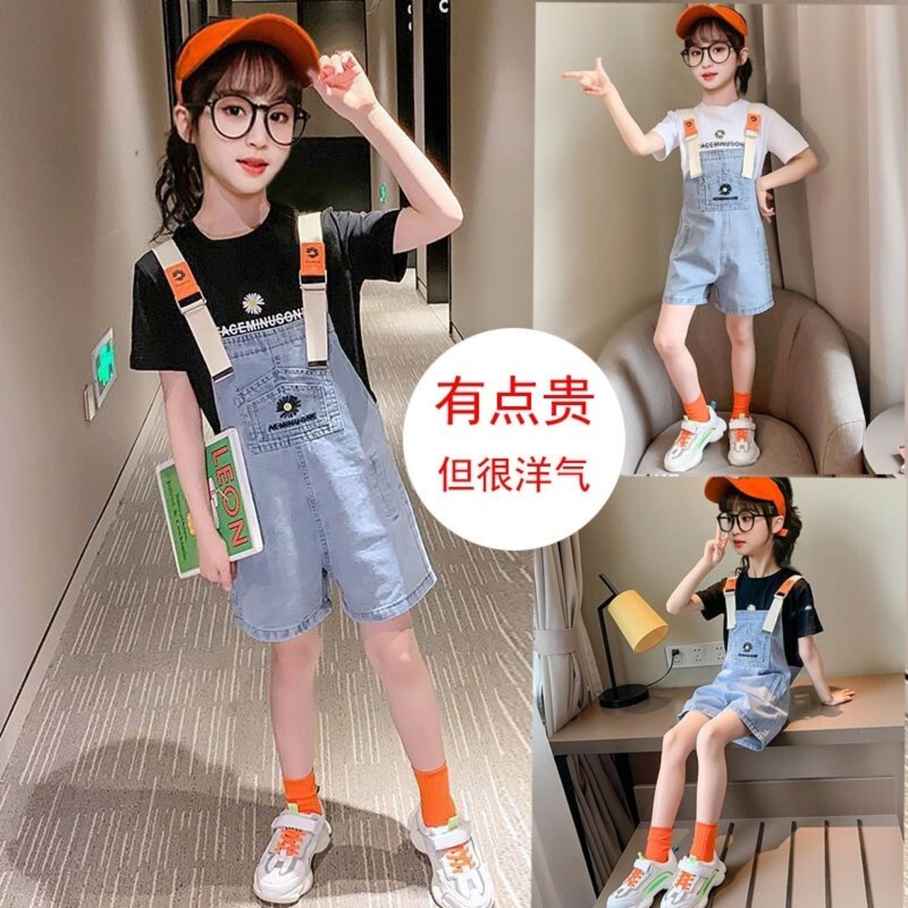 ガールズビブスーツ2020新しいビッグキッズ7-8-10歳の小さな夏のパンツとデニムのツーピーススーツ サマー 夏物 TB2-5 TB2-521703089941