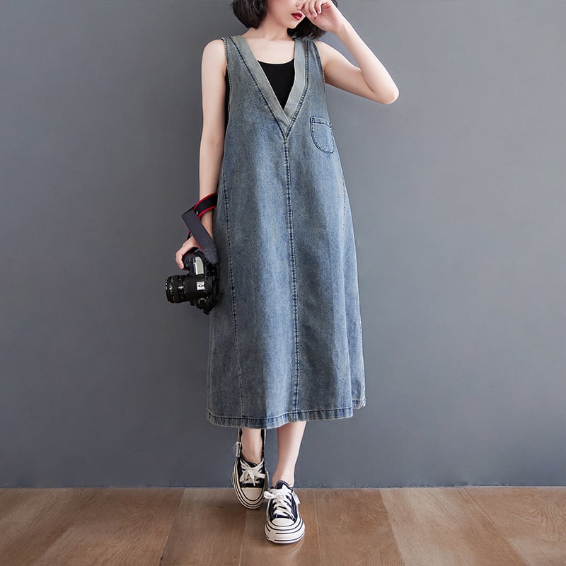 ストラップスカートレディースミドル丈ラージサイズルーズ&シンVネックデニムドレス2021新作サマーノースリーブベストスカート 大きめサイズ 夏物 TB2-8 TB2-871489973348