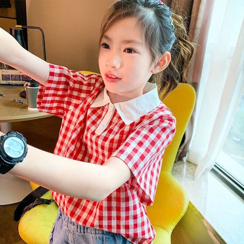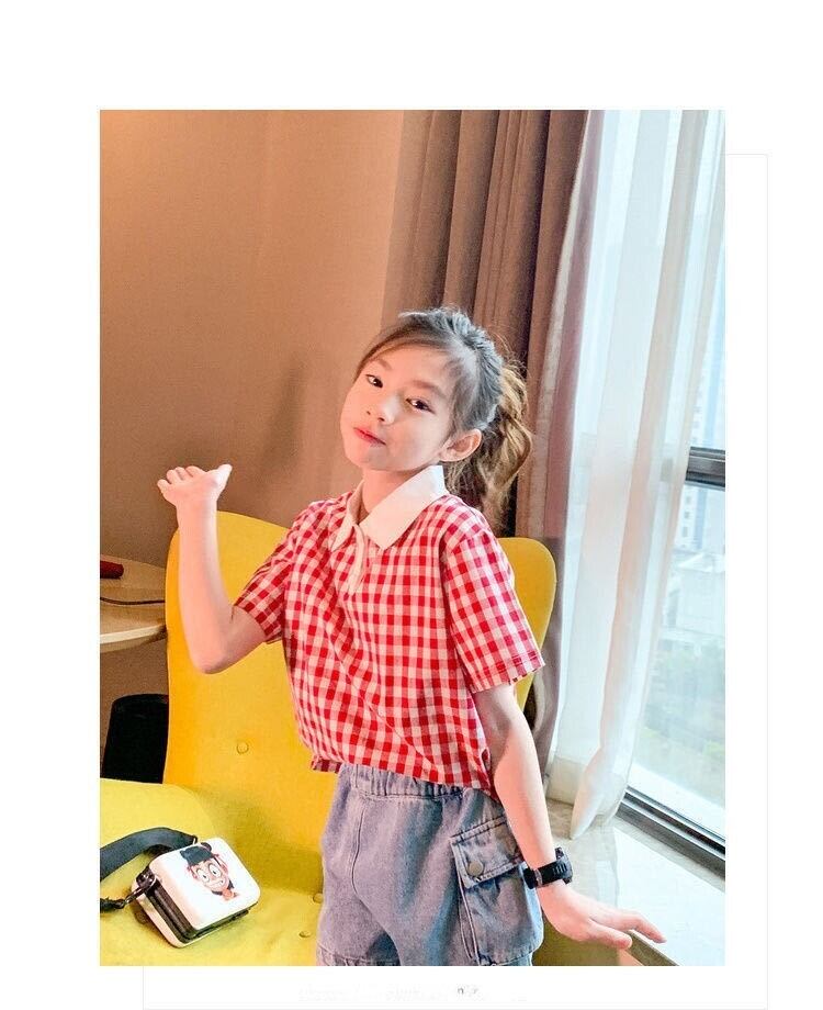 女の子の半袖シャツ2021年夏新しい子供用の大きな子供用ルーズウエスタンスタイルの小さな半袖チェック柄トップス サマー 夏物 キッズ TB2-5 TB2-595087417758