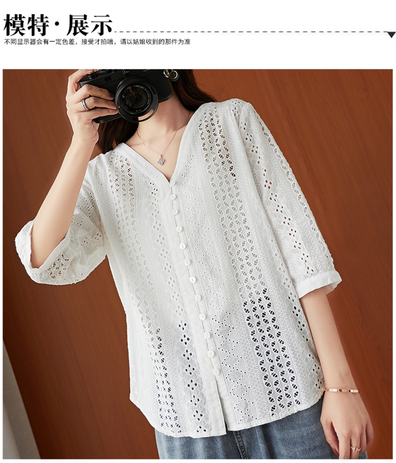 ラージサイズファットmmスウィートかぎ針編み中空Vネックシャツ女性夏ルーズで薄い無地ランタンスリーブシャツカーディガン 大きめサイズ 大人ガーリー キュート カジュアル サマー 夏物 ソリッドカラー TB2-8 TB2-874023557955