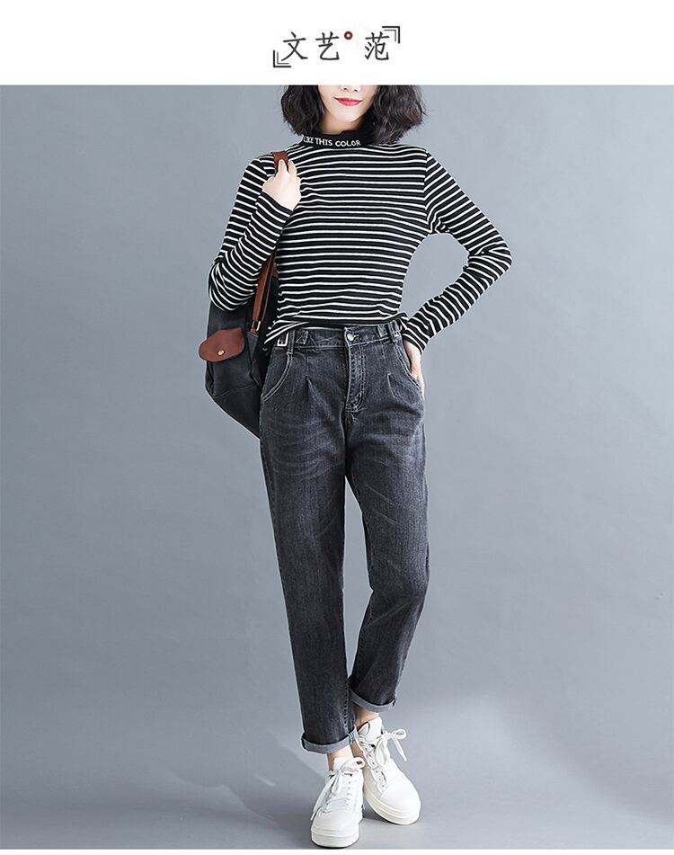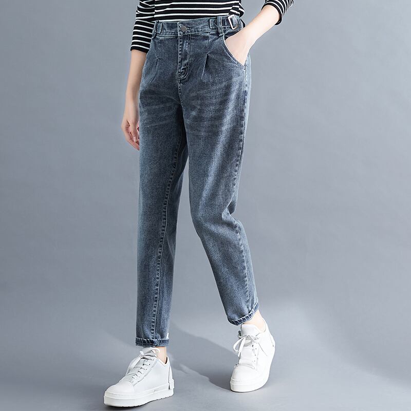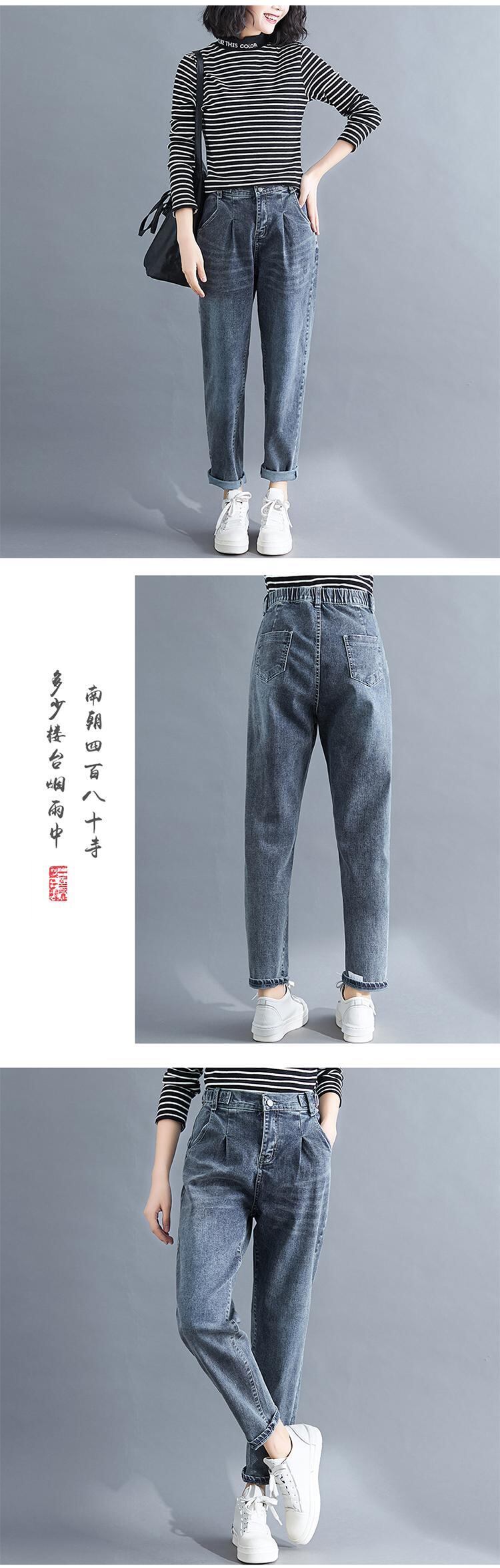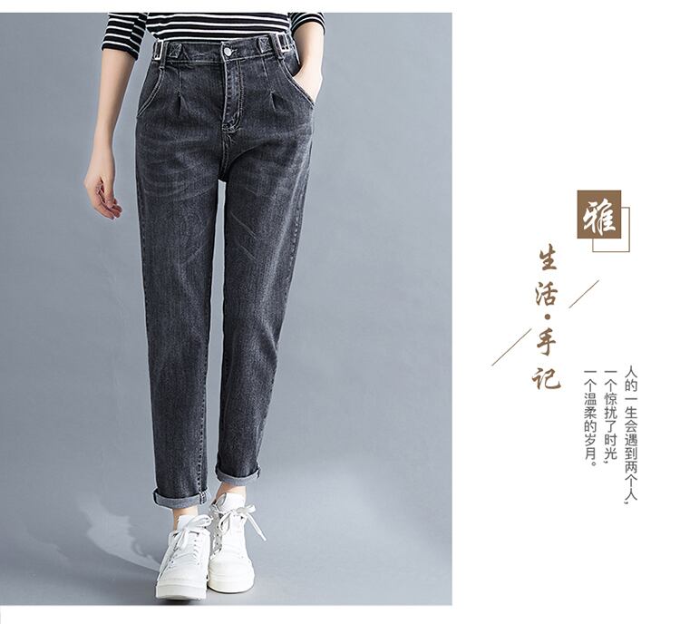 2019秋冬新バージョンのラージサイズのスモーキーグレージーンズの女性とベルベットの厚みのあるルーズスリムハイウエストハーレムパンツ ハイウェスト 大きめサイズ オータム 秋物 ウィンター 冬物 TB2-8 TB2-821894608586