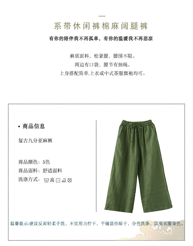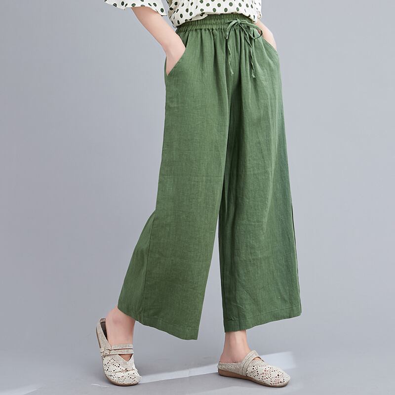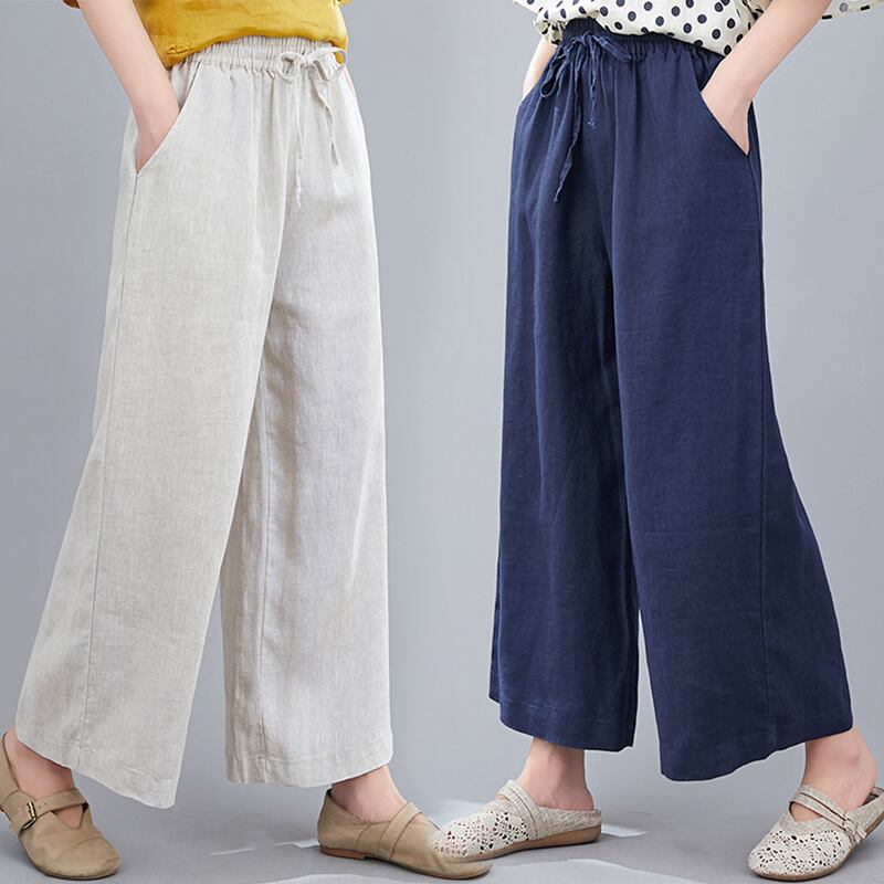 コットンとリネンのワイドレッグパンツレディース2020年新夏バージョンルーズワイルドピュアカラーリネンハイウエストレースアップ薄パンツ サマー 夏物 TB2-8 TB2-837964101308