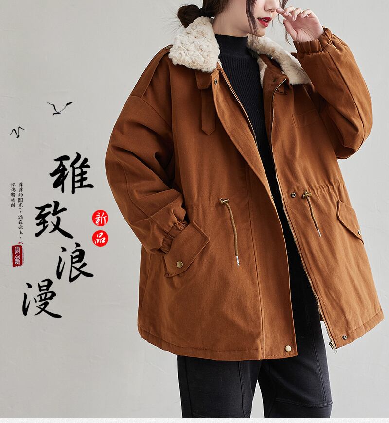 ラムベルベットパッド入りジャケットレディースラージサイズ冬服ルーズファットmmミドル丈ファッションドローストリングウエストツーリングコットンタイド 大きめサイズ ウィンター 冬物 TB2-8 TB2-822485685193