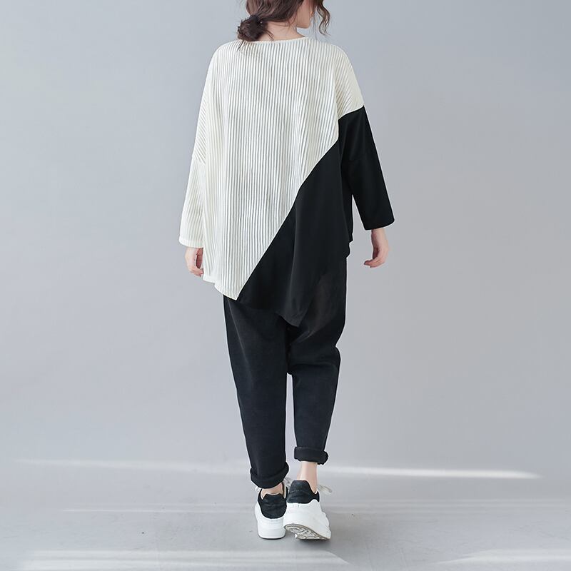 2021年春新作ファットmmラージサイズプリーツステッチトップルーズバージョンイレギュラー長袖Tシャツレディース ロング 大きめサイズ スプリング 春物 TB2-8 TB2-851478630800