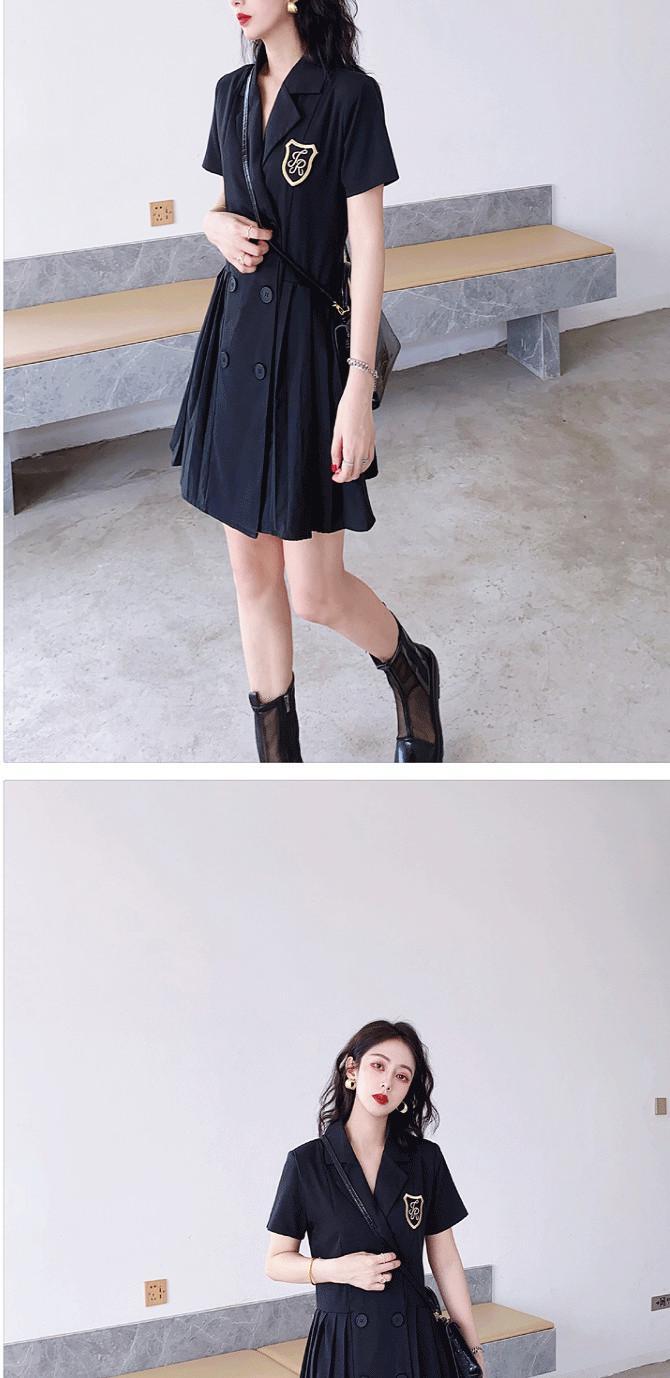 年齢を減らす気質プリーツドレス女性の大きいサイズは薄い半袖レトロスーツスカート太った姉妹ヘップバーン黒のスカートでした ブラック 大きめサイズ TB2-10 TB2-1066939998942
