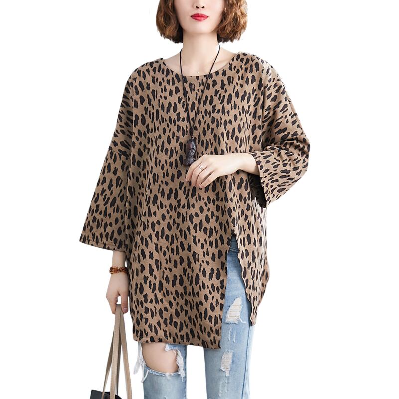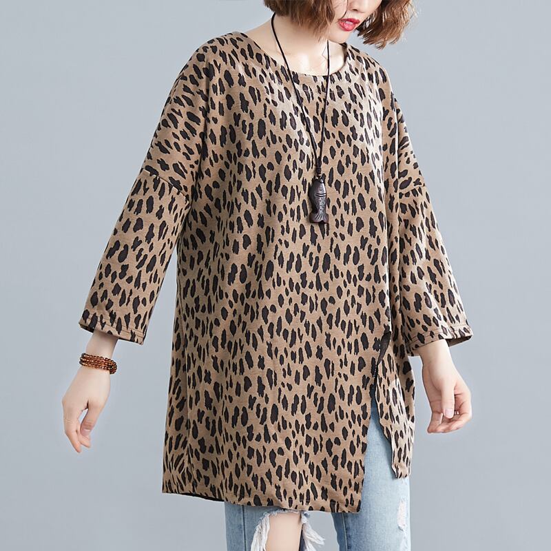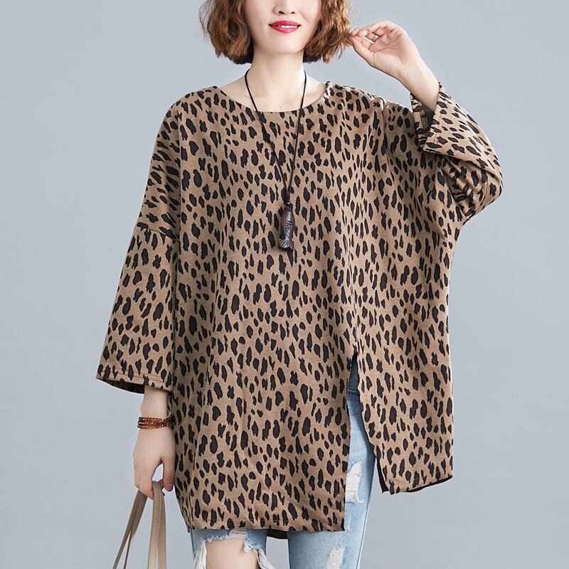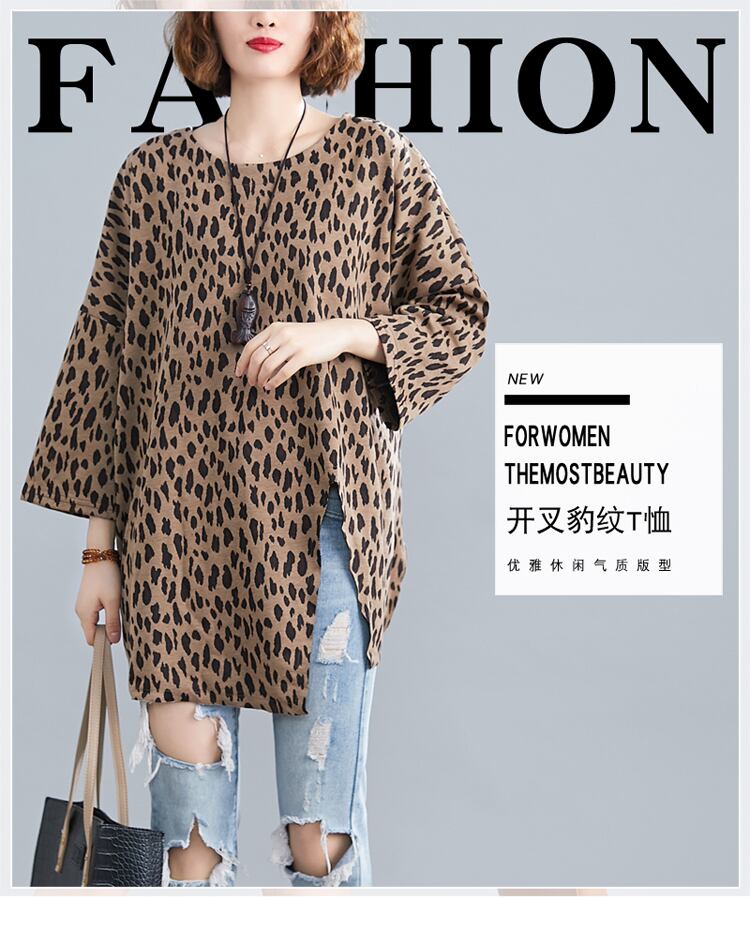 ファットシスターエインスタイルヒョウ柄Tシャツ女性2020年春夏新作ルーズバージョンラージサイズミドル丈スプリットボトミングシャツ 大きめサイズ スプリング 春物 サマー 夏物 TB2-8 TB2-817994217266
